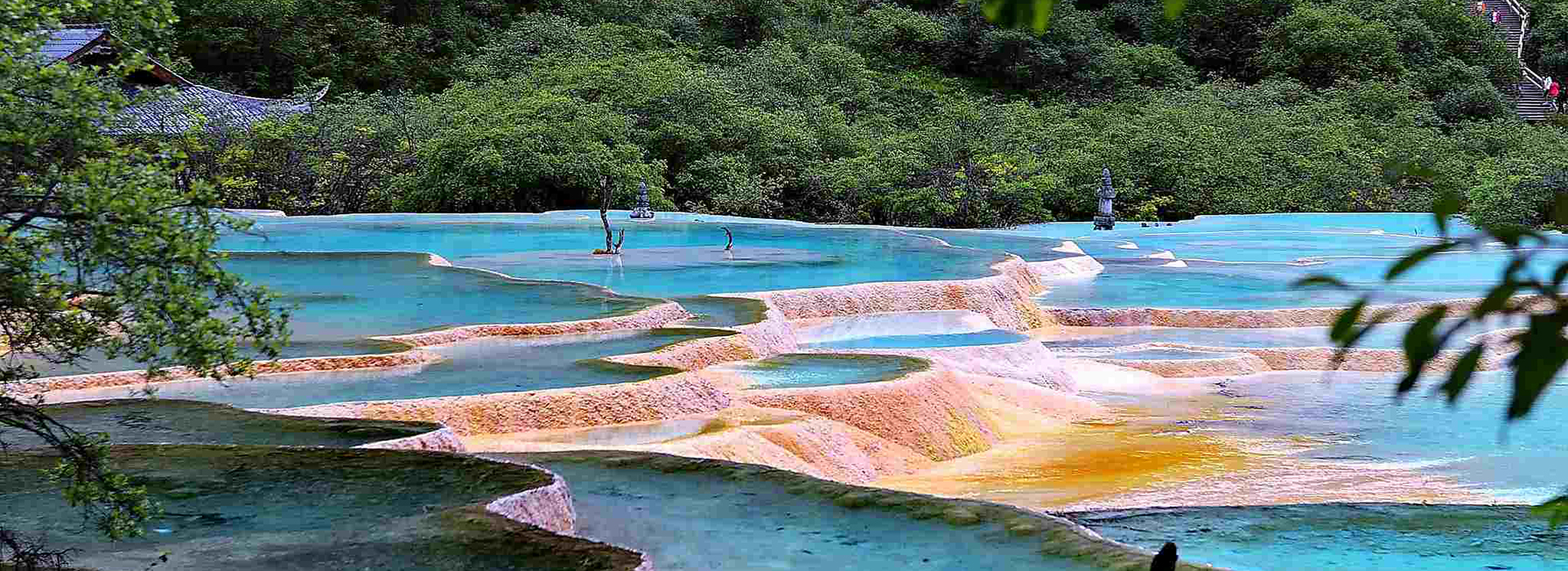 Khe núi đá vôi ở Hoàng Long dài hơn 7km và rộng hơn 300m, khe núi được bao quanh bởi rừng già. Bởi kết cấu địa chất nham thạch ở đây có nồng độ canxi cao nên các dòng suối chảy qua các khe núi này bào mòn các lớp đá và lắng đọng lại tạo thành các con đê. Trong núi có hơn 3.000 hồ nước và suốt nhỏ xanh như ngọc, các hồ này xuống dốc gần như kiểu ruộng bậc thang. Hồ lớn thì rộng tới hàng mẫu, hồ nhỏ thì chỉ như cái chậu. tất cả cá thành hồ đều có màu như hoàng ngọc, lung linh trong trẻo… Có lẽ vì thế mà hệ thống hồ trong khu danh thắng Hoàng Long được mệnh danh là “nhân gian dao trì” tức là hồ quý chốn nhân gian.